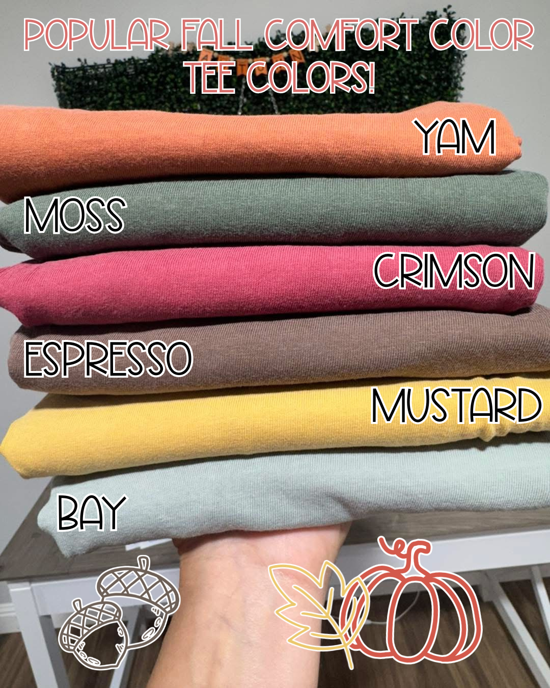 Need help deciding what fall color you would like, look no further! Located to the left is all the fall colored Comfort Color Tees. Most of these also come in Comfort Colors Long-Sleeve.